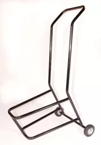 Тележка является цельносварной конструкцией в виде двух опорных П-образных дуг и ручки. Для перемещения тележки в нижней её части установлены два колеса с резиновыми ободами.