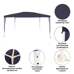 Тент садовый из полиэстера практичное и популярное решение для использования на даче, пикниках, шашлыках и кемпинге. Крыша тента защитит от солнца. Тент садовый из полиэстера быстро и несложно монтируется и закрепляется с помощью растяжек.