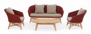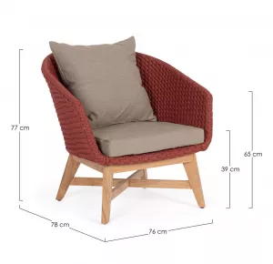 Тиковое кресло плетеное с роуп с подушкой, алый
