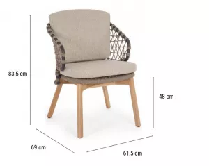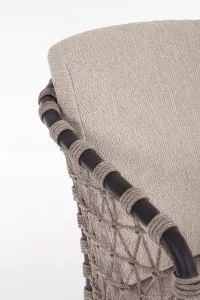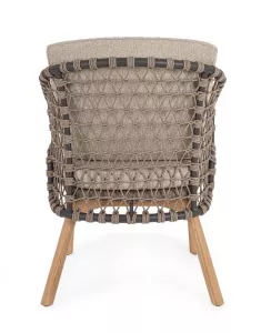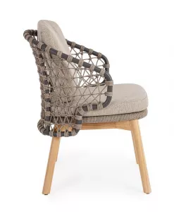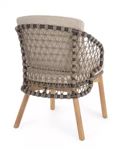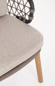 это кресло с высококачественным плетением и деревянными ножками. Оно станет прекрасным дополнением для разнообразных открытых пространств различных проектов. Великолепная комбинация плетения из роупа, которое обвивается вокруг алюминиевой рамы, и ножек из тика, славящегося своей прочностью и надежностью, позволяющей использовать мебель из этой древесины на свежем воздухе, придает модели гостеприимный и домашний характер.