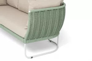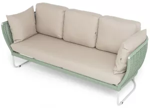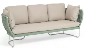 Зеленый диван 3-х местный плетеный из роупа, каркас алюминий