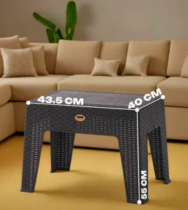 Цельнолитой универсальный пластиковый столик с имитацией ротанга.