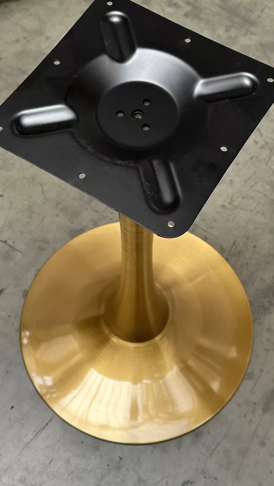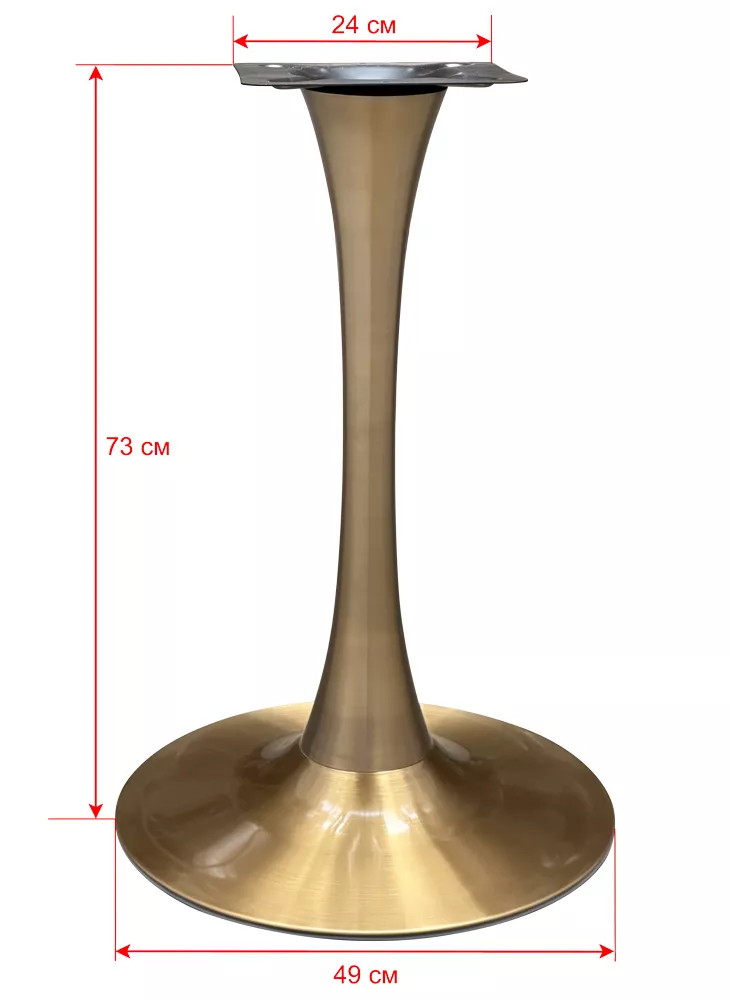 Подстолье из нержавеющей стали золотого цвета . Рекомендованный максимальный размер столешницы - 80х80, 80 см Характеристики