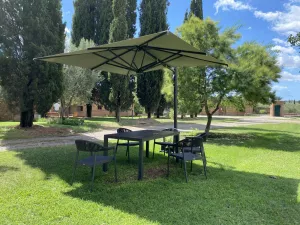 - Инновационный выдвижной механизм позволяет открывать и закрывать зонт одним движением, не задевая мебель под ним.
